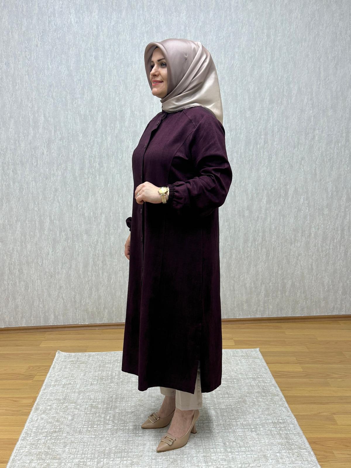 115 cm uzunluğunda, yanlardan yırtmaçlı